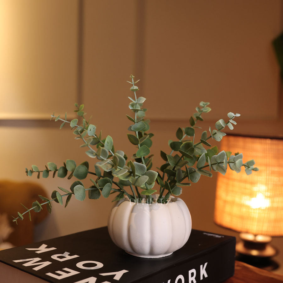 Crafted in a chic pumpkin-shaped design with a smooth matte white finish, each piece holds lifelike greenery that adds a burst of freshness and style to any setting. Perfect for desks, shelves, coffee tables, or bedside accents, these timeless decorative planters effortlessly brighten up your space while maintaining a clean, modern aesthetic.