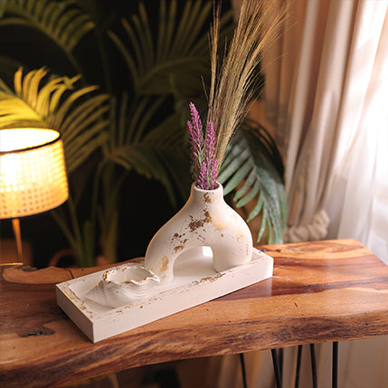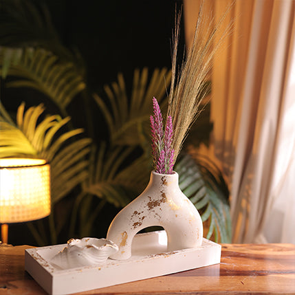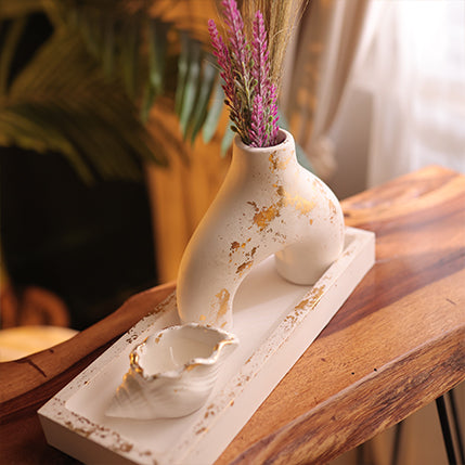 TAN vase exudes sophistication and versatile design makes it a striking focal point for any room, effortlessly enhancing its visual appeal. Conch candle with intricate design all set to Infuse your surroundings with an inviting ambiance.
